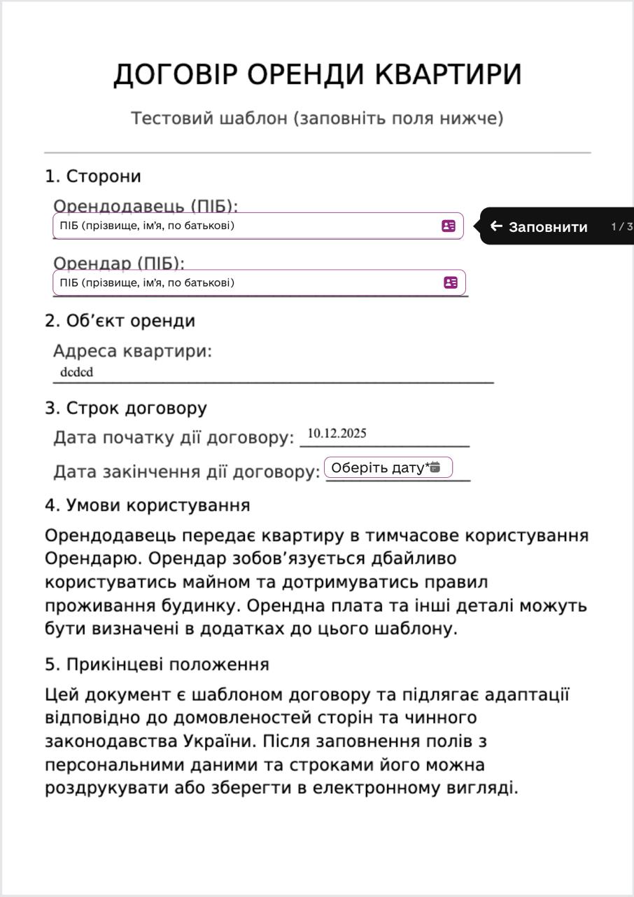 Генеруйте договір оренди за допомогою AI з урахуванням умов угоди